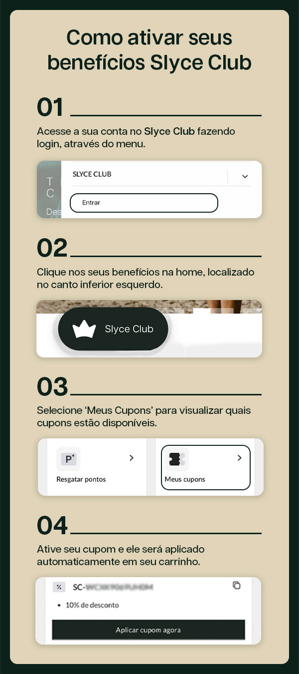 Mais do que um programa de vantagens, o Slyce Club é a nossa forma de reconhecer quem vive o tênis com estilo e escolheu fazer parte do nosso universo.