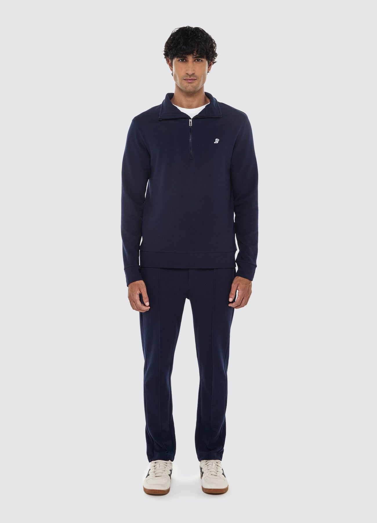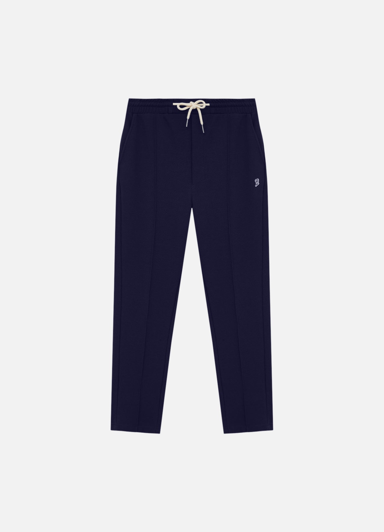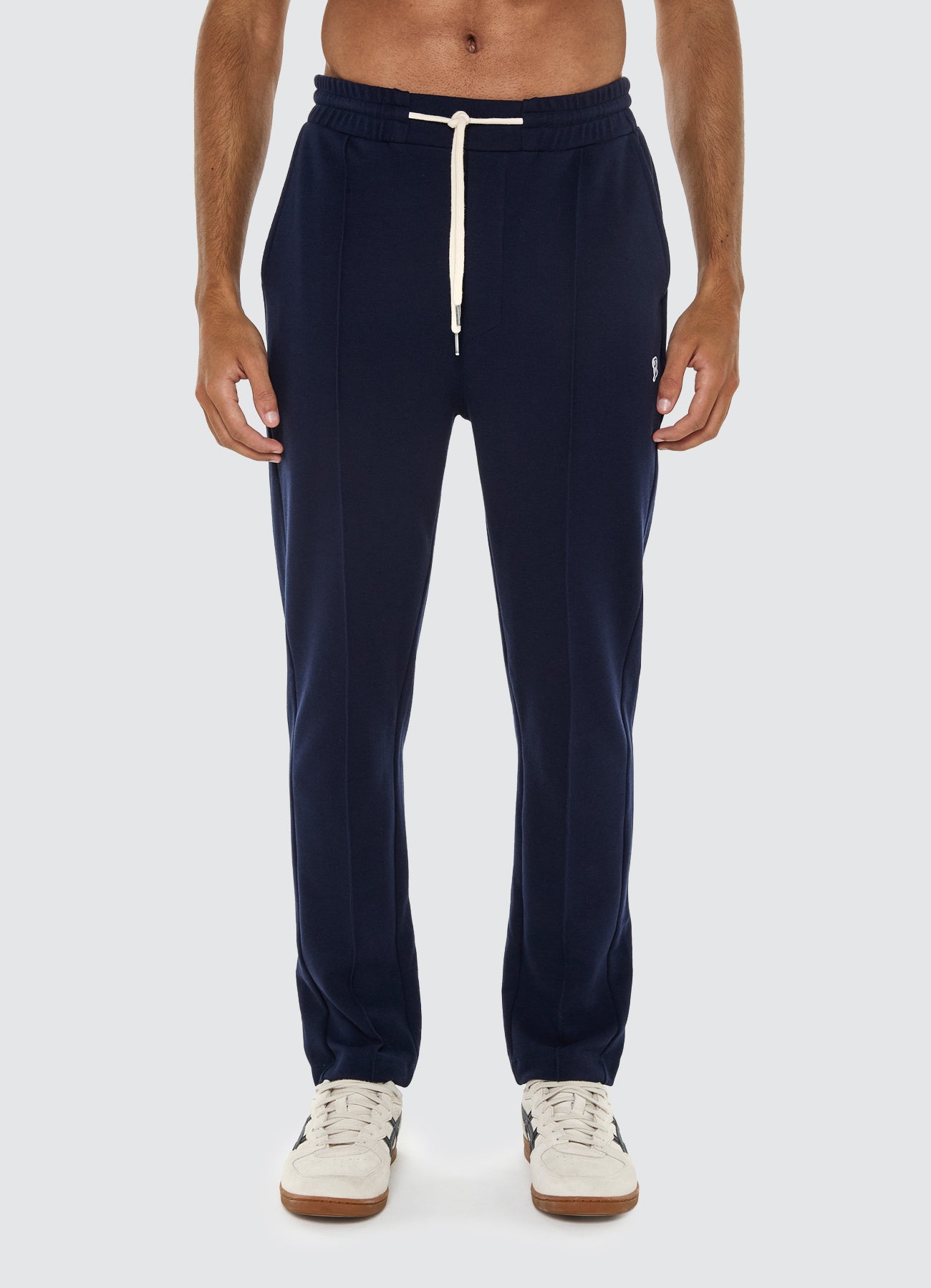 O vinco marcado na perna traz o caimento clássico da alfaiataria, enquanto o cós elástico com cordão ajustável oferece liberdade e praticidade com acabamento moderno. Uma peça que traduz o equilíbrio entre o casual e o sofisticado, com DNA esportivo.