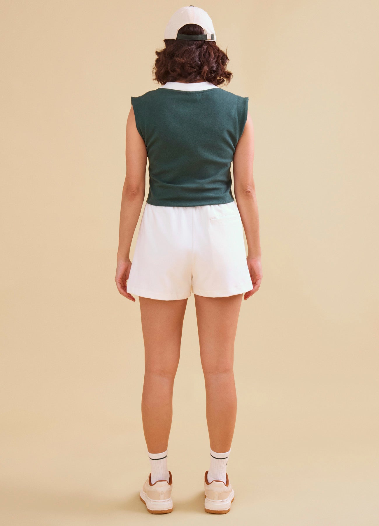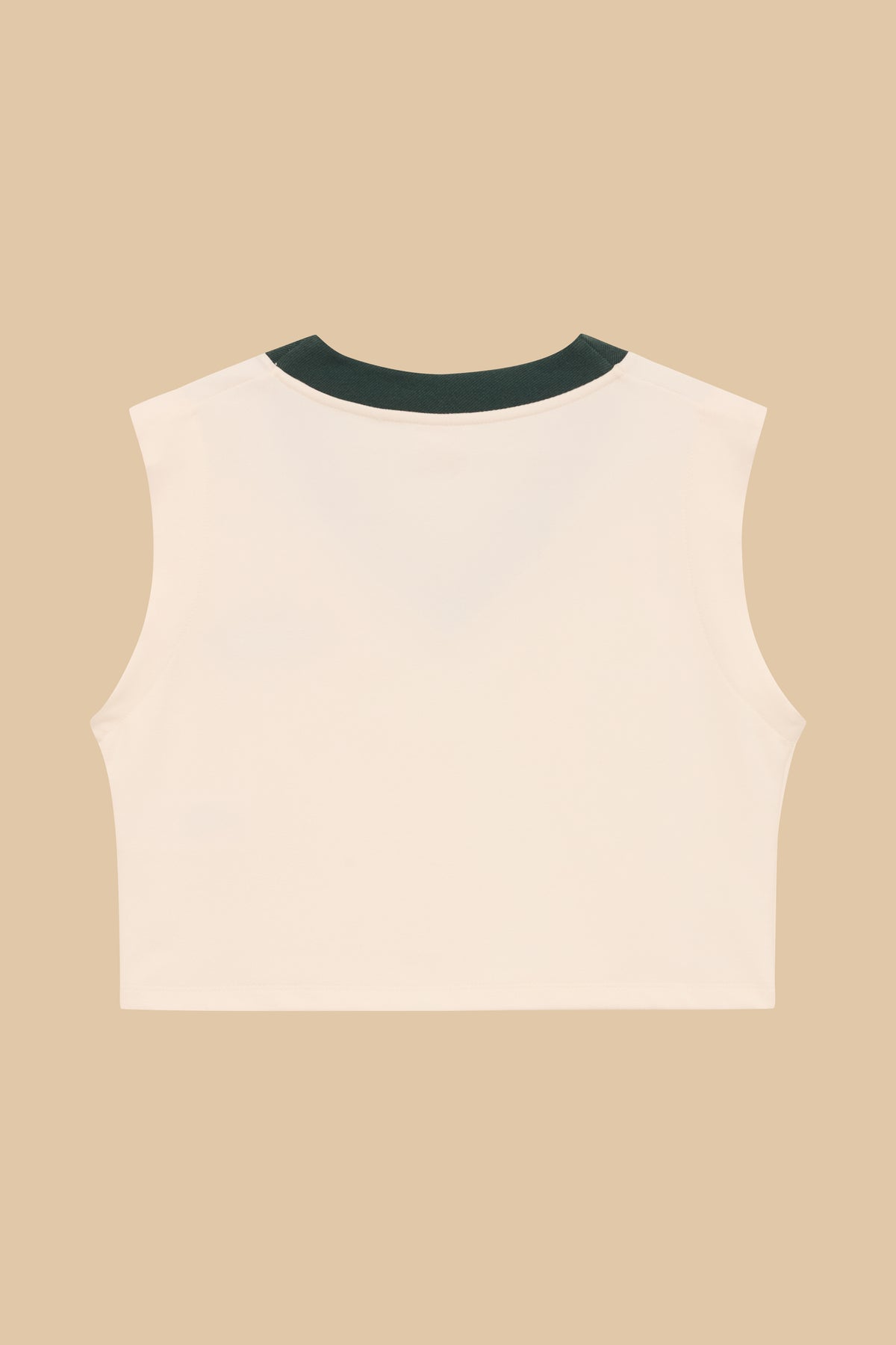Clássica e elegante, a Regata Vintage Decote V é a escolha ideal para compor looks sofisticados e descontraídos. Com ombros marcados e um shape solto, ela realça a silhueta de maneira moderna e confortável, destacando-se pelo comprimento médio e leve acinturação que criam um visual contemporâneo. Os detalhes refinados, como a gola em V contrastante, conferem personalidade e distinção ao design. Confeccionada em malha texturizada premium que combina Algodão Sustentável BCI, Viscose Sustentável e elastano, esta peça é essencial para um guarda-roupa versátil e elegante.